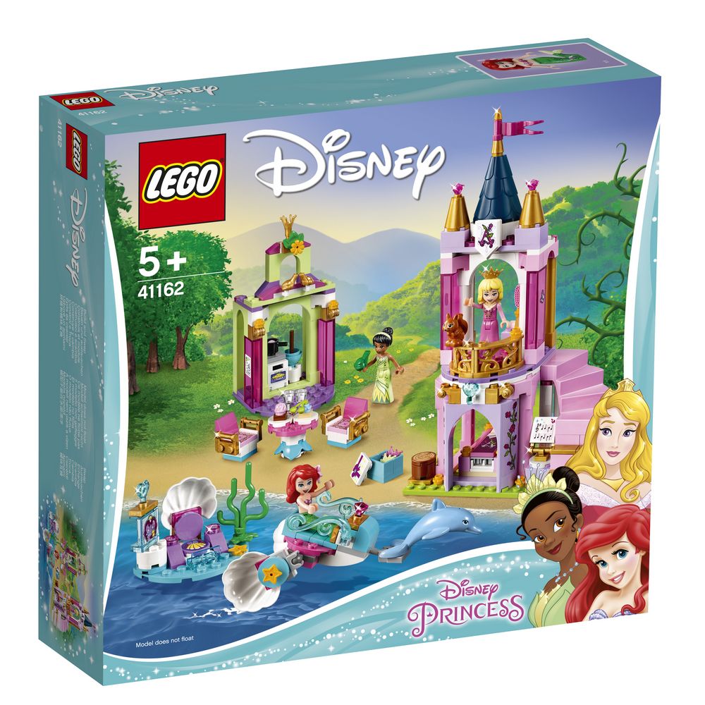 Sada LEGO® l Disney 41162 Královská oslava Ariel, Šípkové Růženky a Tiany je speciální stavebnice se 3 slavnými princeznami od Disneyho, která oslavuje hned 3 Disney výročí: 60. výročí Šípkové Růženky, 30. výročí Malé mořské víly a 10. výročí pohádky Princezna a žabák. Obsahuje malou hradní věž s točitým schodištěm vedoucím do ložnice Šípkové Růženky a balkónem s otočným parketem, Arielin mušlový trůn a kočár tažený delfínem a restauraci princezny Tiany s malou kuchyní a jídelním koutem. Tato skvělá modulární stavebnice má snadno přestavitelné části a dá se spojit s jinými kompatibilními sadami LEGO l Disney Princess™, proto umožní všem fanynkám princezen od Disneyho popustit uzdu fantazii a vytvořit dobrodružství snů.