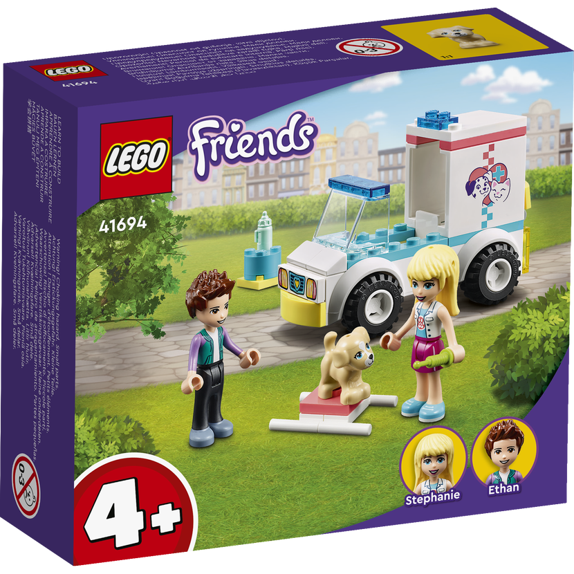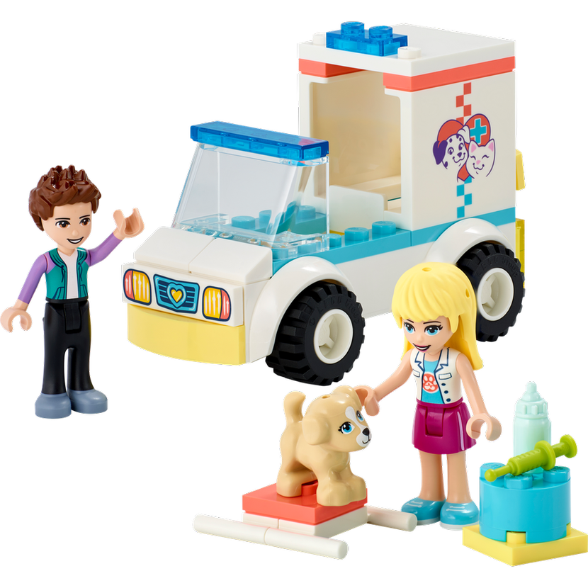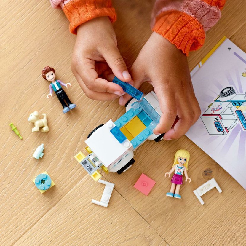 • Nápadité doplňky – tato snadno sestavitelná stavebnice obsahuje LEGO Friends Stephanie a Ethana, štěně a veterinární sanitku pro malé milovníky zvířátek