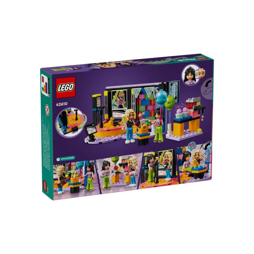 Stavebnice LEGO® Friends (42610) Karaoke párty představuje úžasný dárek pro děti od 6 let, které milují zpěv a vyprávění. Součástí je otáčecí pódium, mikrofony, odpočinková zóna a model výrobníku ledové tříště pro pořádnou narozeninovou karaoke párty! Nechybí 2 postavy LEGO Friends s výrazy zpěvu navíc, figurka gekona s spousta doplňků. S touto stavebnicí se děti vydají na Lianninu oslavu narozenin, kde rozpohybují pódium pomocí ozubeného kola. Budou předstírat, že postavičky zpívají do mikrofonu, a navíc jim vymění tváře za výrazy zpěvu. Kamarádi si odpočinou s chutnou ledovou tříští a cupcaky. Nova dokonce přinesla narozeninový dárek pro Liann. Děti rozhodnou o tom, jak bude příběh pokračovat! Objevte další stavebnice pro děti ze světaLEGO Friends, které nabízí mnoho příležitostí k vyprávění příběhů inspirovaných reálným světem.