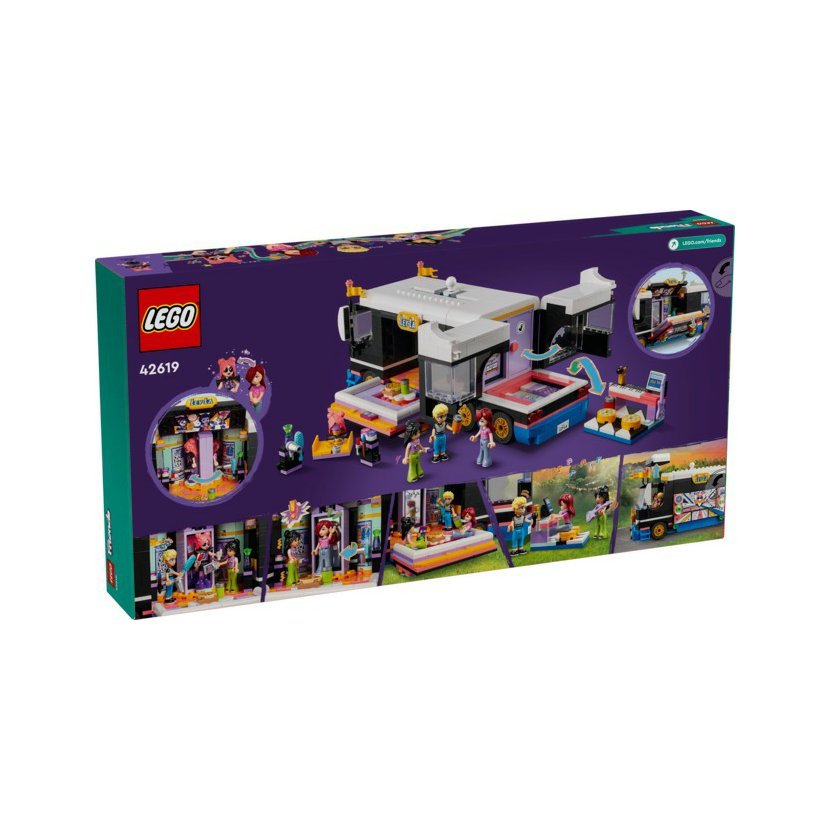 Vdechněte život stavebnici LEGO® Friends (42619) Autobus pro turné popových hvězd pro děti od 8 let. Součástí stavebnice je sestavitelný model autobusu a zákulisí s doplňky a 4 postavami LEGO Friends. S touto stavebnicí se děti pustí do vyprávění o tom, jak se stydlivá Paisley před zrcadlem přemění ve hvězdnou umělkyni Ley-Lu. Malí stavitelé si vymyslí příběhy o přátelství, ve kterých Olly zpěvačce pomůže vytvořit outfit na vystoupení a Liann přijde navštívit svou oblíbenou hvězdu Ley-Lu. Autobus lze otevřít zepředu, zezadu i po stranách a odhalit tak propracovaný interiér včetně zákulisí s nahrávacím prostorem, klávesami, kytarou, postelemi a koupelnou. Ve stavebnici nechybí řada doplňků, včetně fotografie s autogramem, ramenních vycpávek, bot, make-upu a telefonu. Stavebnice představuje zábavný dárek pro děti, které milují hudbu nebo vyprávění a zároveň pomáhá rozvíjet sociální a emoční dovednosti.
