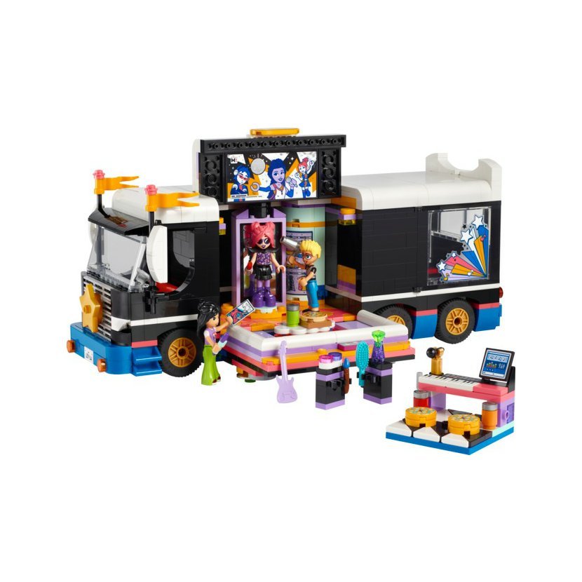 • Nalaďte se na hudbu s autobusem pro turné – Součástí stavebnice LEGO® Friends Autobus pro turné popových hvězd pro děti od 8 let jsou 4 minipanenky a spousta doplňků