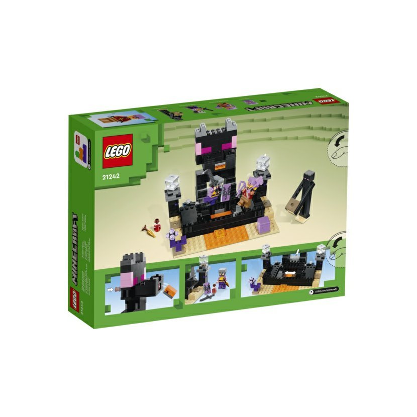 Těžko si lze představit dobrodružnější bitvy v říši Minecraft® než ty, které hostí Aréna v Endu (21242) od LEGO® Minecraft. Hráči od 8 let budou muset zapojit všechny své dovednosti, aby dokázali v tomto zábavném a akčním modelu přežít. Dobrodružné souboje hráčů Hráči Minecraftu proti sobě postaví bojovníka z Endu a dračího lukostřelce v legendární aréně v Endu. Oba protivníci jsou vybaveni brněním a zbraněmi, ale pokud chtějí přežít, budou se muset vypořádat i s dalšími nástrahami. Stačí aktivovat odpalovač a z tlamy sochy draka Ender tyčící se nad arénou začnou létat bloky lávy. Když se rozestoupí pohyblivá zem, objeví se bojovníkům pod nohama lávové jezírko. Další herní možnosti jsou inspirovány 2 populárními moby z prostředí Minecraftu – endermanem a shulkerem – a také dobře známými doplňky ze hry, včetně zlaté mrkve a lektvaru. Pro ještě více digitální zábavy je zde aplikace LEGO Builder, která nabízí intuitivní nástroje přibližování a otáčení, aby si děti mohly při stavění svůj model vizualizovat.