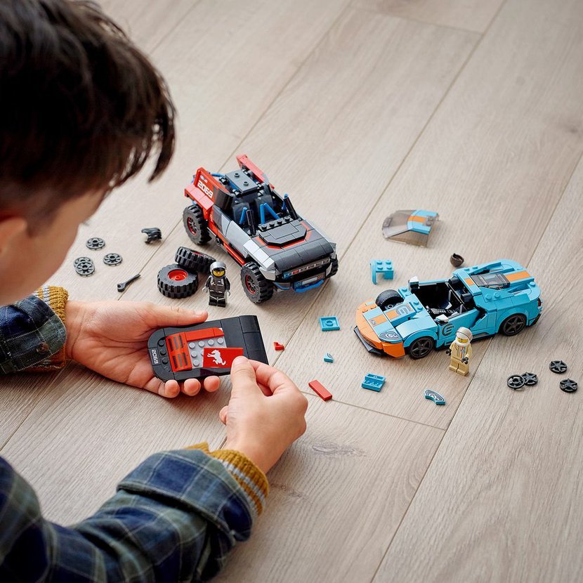 • Děti a fandové rychlých strojů mohou rozšířit sbírku a postavit si a prozkoumat 2 světoznámá vozidla firmy Ford a pak s nimi vyrazí na nápaditá závodní dobrodružství, kde poměří výkon s dalšími vozy Speed Champions.