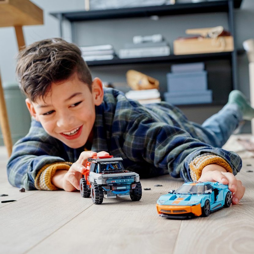 • Impozantní stavebnice Ford GT Heritage Edition a Bronco R (76905) od LEGO® Speed Champions je ideální pro fanoušky jedinečných aut a vzrušujících závodů.