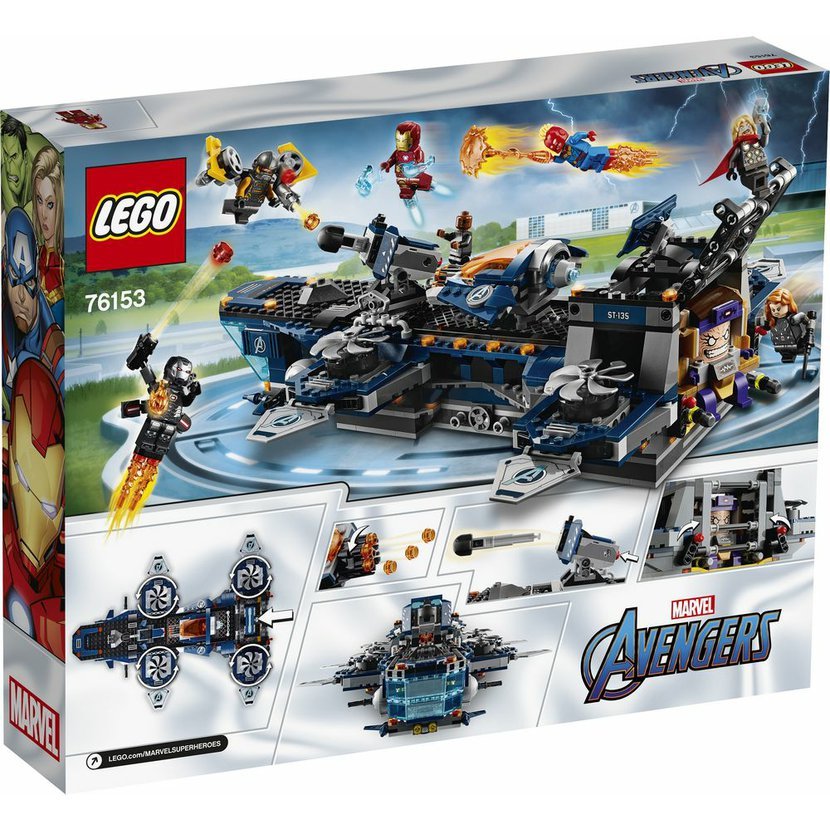 • Helicarrier nabízí rotory, děla a kokpit pro 3 minifigurky. Součástí modelu jsou minifigurky Iron Mana, Captain Marvel, Thora, Black Widow, hrdiny War Machine, Nicka Furyho, M.O.D.O.Ka a agentů A.I.M.