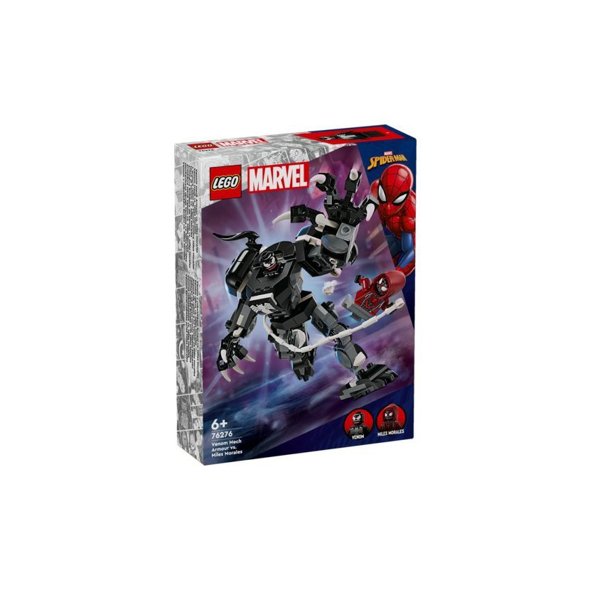 Se stavebnicí LEGO® Marvel (76276) Venom v robotickém brnění vs. Miles Morales se malí stavitelé od 6 let pustí do velkolepých dobrodružství se svými oblíbenými superhrdiny. Užijí si velkou porci zábavy s houpáním na pavučinách, superhrdiny a sestavitelným robotickým brněním Venoma s klouby, 2 minifigurkami oblíbených postav a doplňky vystřelujícími pavučiny. Sestavitelné robotické brnění Venoma má spoustu funkcí, včetně plně pohyblivých paží, nohou a rukou s drápy, které jsou dostatečně velké na to, aby uchopily minifigurku. Otevřete hrudník brnění a odhalte kokpit pro minifigurku Venoma. Nechybí ani minifigurka Milese Moralese se 2 ručními vystřelovači pavučin a ohebným pavučinovým „lanem“, které lze hned na několika místech připevnit k robotickému brnění Venoma. Děti mohou tuto stavebnici kombinovat s dalšími robotickými brněními z řady LEGO Marvel (prodávají se samostatně) a rozšířit nápadité herní možnosti. Pro ještě více digitální zábavy je zde zábavná a intuitivní aplikace LEGO Builder, kde mohou stavitelé přibližovat a otáčet modely ve 3D a sledovat postup.