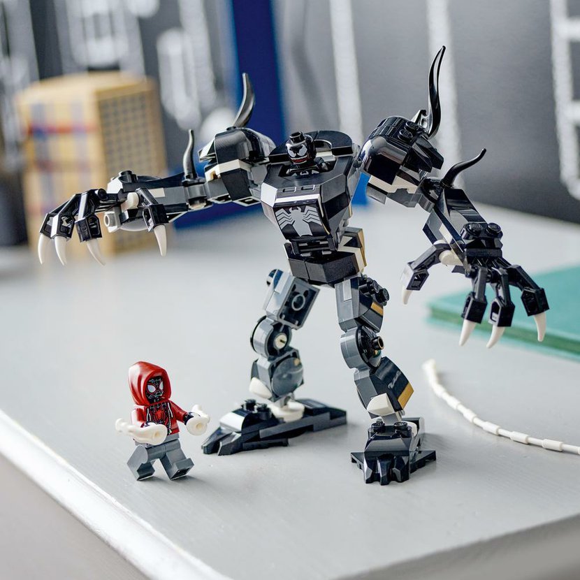 • Pohyblivé robotické brnění a minifigurky – Součástí stavebnice je sestavitelné robotické brnění s kloubovými pažemi, nohama a prsty a minifigurky LEGO® Milese Moralese a Venoma