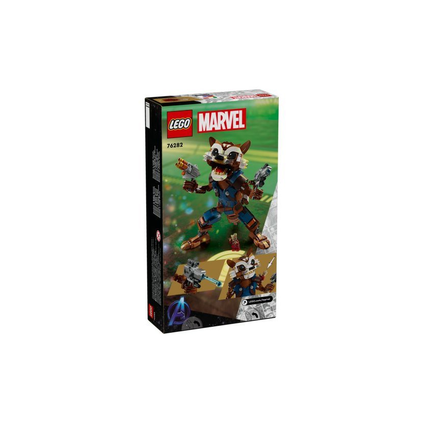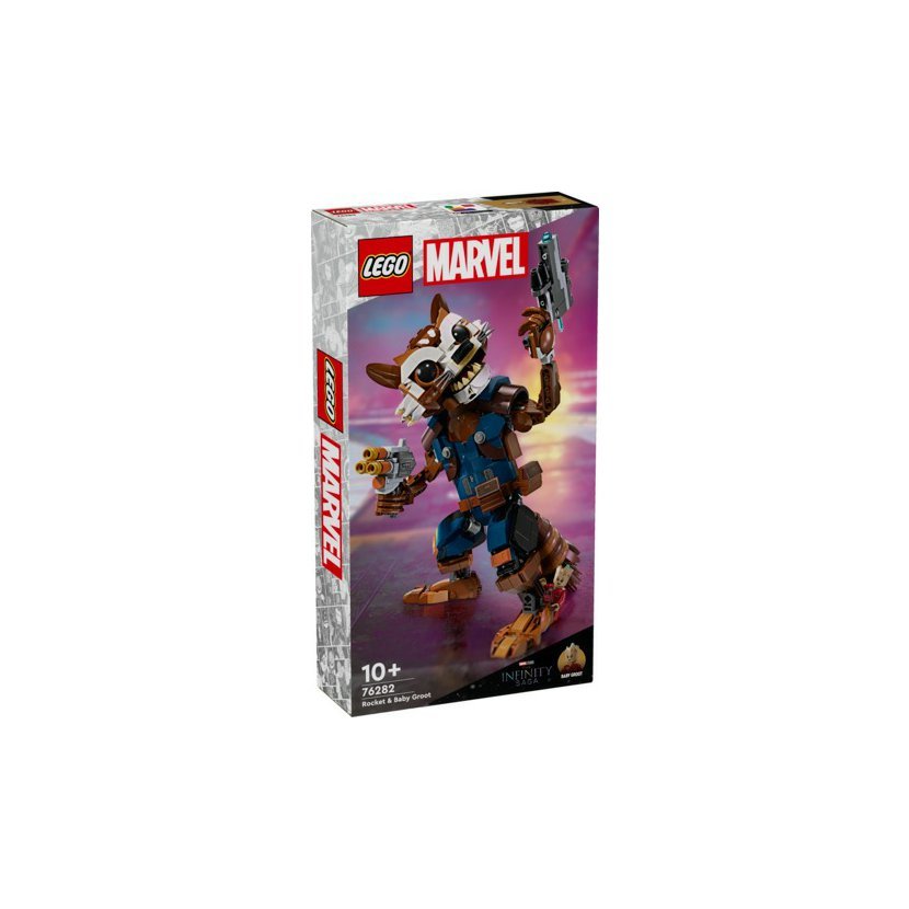 • 2 postavy ze světa Marvel – Součástí stavebnice jsou 2 Strážci galaxie: Rocket s pružinovým vystřelovačem a blasterem a minifigurka malého Groota, kterého lze připevnit na Rocketovo rameno