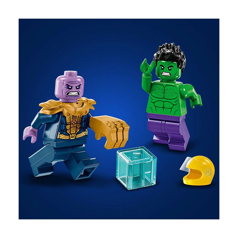 Minifigurky LEGO® | Marvel – Stavebnice obsahuje minifigurku Hulka s odnímatelnou helmou a minifigurku Thanose s teseraktem a Rukavicí nekonečna