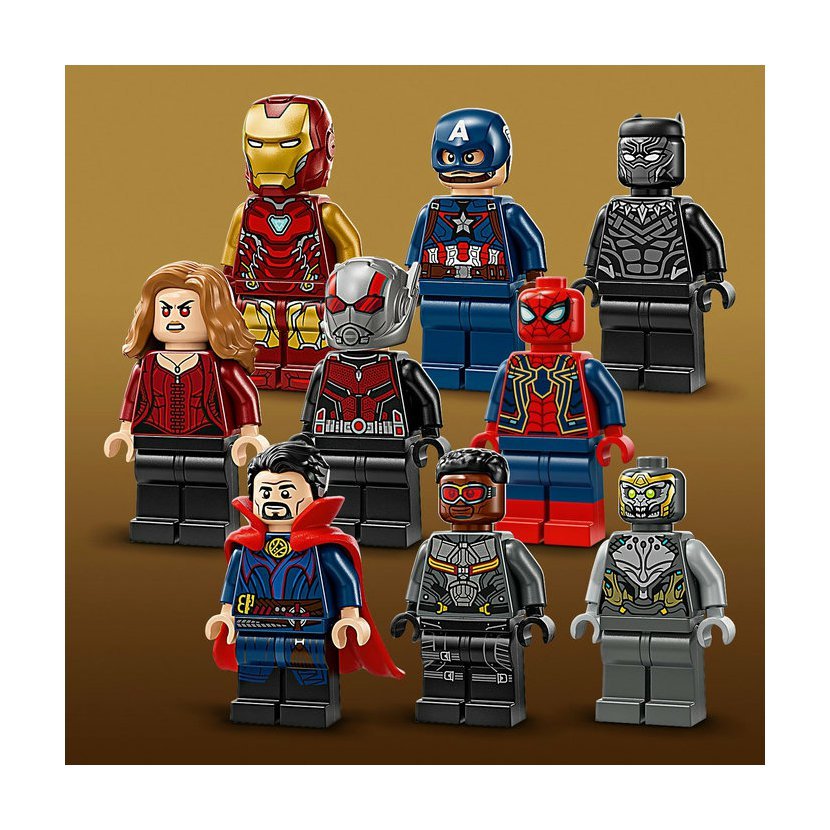 Figurky LEGO® Avengers – Minifigurky Kapitána Ameriky, Black Panthera, Iron Mana, Scarlet Witch, Ant-Mana, Iron Spidera, Doctora Strange, Falcona a Chitauriho a figurka Thanose a robotický oblek Ant-Mana