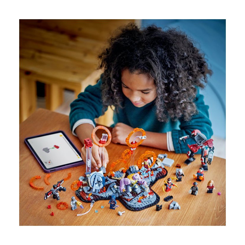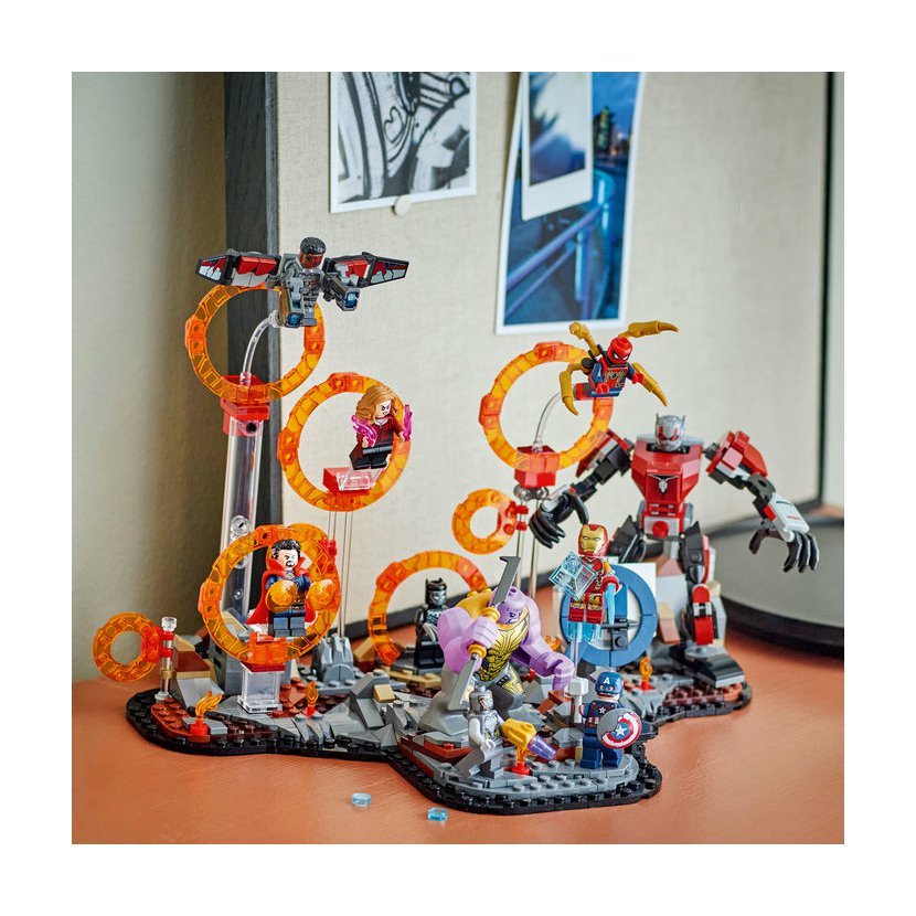 Autenticky propracovaná stavebnice LEGO® | Marvel (76323) Avengers: Endgame Poslední bitva je plná slavných superhrdinů, včetně minifigurek Iron Mana a Black Panthera. Součástí je také řada funkcí a doplňků, které inspirují k nekonečným kreativním dobrodružstvím. Stavebnice potěší kluky a holky od 10 let, kteří milují stavění a vystavování hraček a zábavu se superhrdiny. Tato stavebnice zobrazuje velkolepou bitvu z filmu Avengers: Endgame z dílny studia Marvel a obsahuje interdimenzionální portály vytvořené pomocí dvouprstenu a 9 minifigurek: Kapitán Amerika (se štítem), Iron Man MK85 (s mečem a štítem), Chitauri (s vystřelovačem na ruce), Ant-Man, Scarlet Witch (s dílky ve tvaru plamene), Doctor Strange, Iron Spider (se 4 pohyblivýma „nohama“ na zádech), Black Panther a Falcon (se 2 vystřelovači). Díky velké figurce Thanose z kostek LEGO, plně pohyblivému robotickému obleku Ant-Mana, 2 funkcím vybuchujících skal a nekonečně všestranné přestavitelnosti si děti vychutnají superhrdinskou akci velkolepých rozměrů! Model obsahuje 621 dílků. Vdechněte život scéně z filmu Avengers: Endgame od studia Marvel – Tato propracovaná stavebnice LEGO® | Marvel Avengers představuje skvělý dárek pro kluky a holky od 10 let