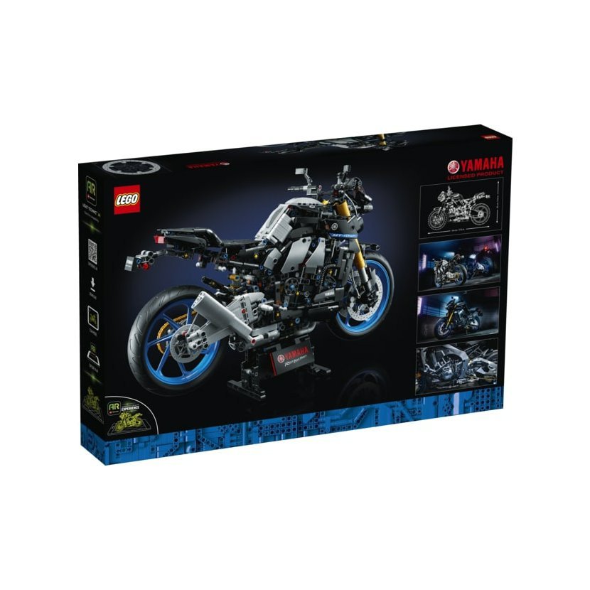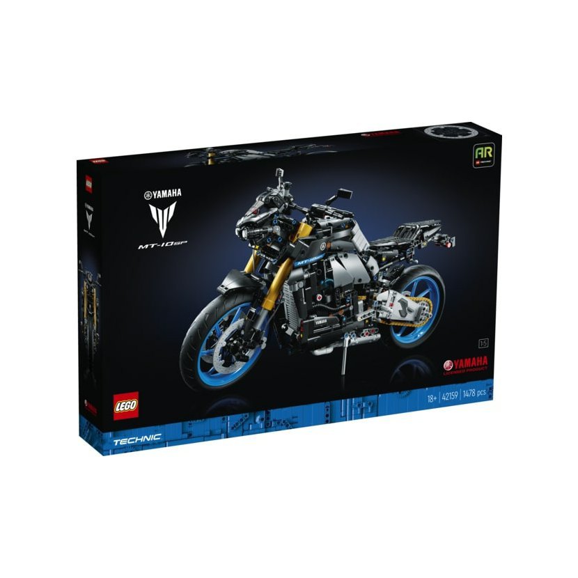 Tento projekt nadchne dospělé fanoušky motorek. Model LEGO® Technic (42159) Yamaha MT-10 SP vzdává hold nejsilnější motorce v kategorii „hyper naked“. Minimalistický styling zdůrazňuje točivý motor se 4 válci. Vyzkoušejte, jestli model přivede k životu aplikace LEGO AR. Autentické zpracování Ve snaze co nejvíce přiblížit tento model skutečné motorce Yamaha jsme zvážili každý detail. Součástí je 4válcový motor, 3stupňová převodovka a řetězový pohon s funkčním odpružením obou kol. Součástí převodovky je buben spojky, řadicí páka, kroužek řazení a ozubené kolo. Model má také funkční řízení pomocí gest na řidítkách, stojánek a podstavec na vystavení. Nastartujte motory Tato stavebnice je součástí kolekce modelů LEGO pro dospělé. Je to zábavný projekt pro vás nebo ideální dárek pro fanoušky motorek Yamaha a vybízí k soustředěnému stavění a objevování tohoto podrobně zpracovaného modelu.