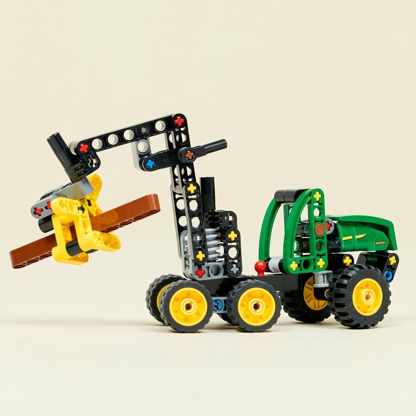 Inspirujte kluky a holky od 7 let k lesním dobrodružstvím se stavebnicí LEGO® Technic Kombajn John Deere 1470H (42218). Toto vozidlo je vybaveno celou řadou funkcí, které potěší malé fanoušky značky John Deere. Prohlédněte si rameno, které se otáčí o 180 stupňů a pak se pusťte do akce: děti si mohou vyzkoušet otevírání a zavírání drapáku, aby uchopily, zvedly a spustily kládu. Tato hračka STEM se také pyšní speciálním odpružením a kloubovým řízením, které můžou děti otestovat. Díky poutavému barevnému provedení v zelené, černé a žluté barvě John Deere tato stavebnice přestavuje zábavnou hračku, se kterou si děti vyhrají po celé hodiny. Stavebnice LEGO Technic mají realistické mechanismy a funkce pohybu, které snadno uvedou mladé stavitele LEGO do světa skutečného inženýrství. Děti můžou stavět s jistotou díky aplikaci LEGO Builder, která jim umožňuje přibližovat a otáčet model ve 3D a sledovat postup pomocí srozumitelného digitálního návodu. Stavebnice obsahuje 117 dílků.